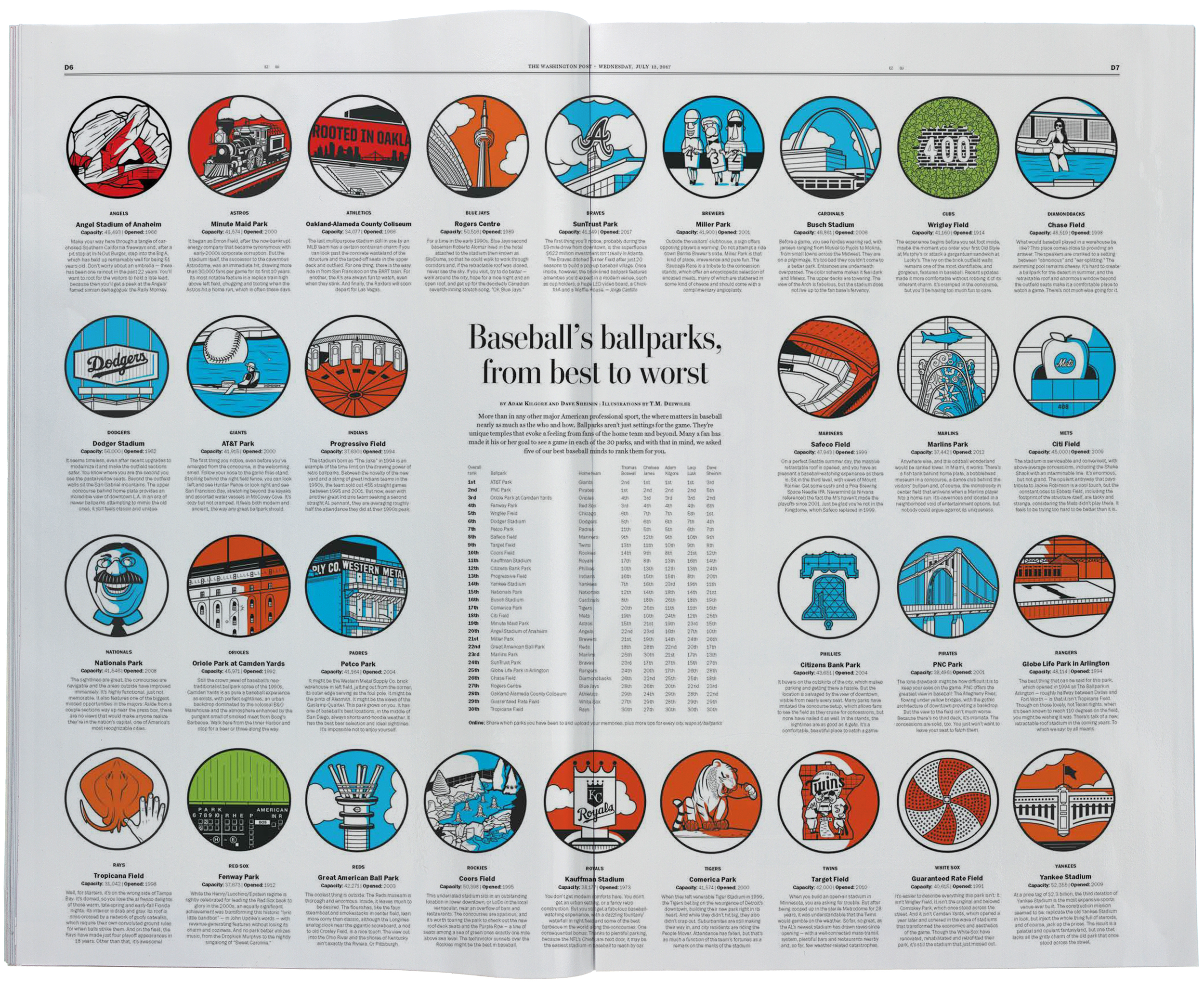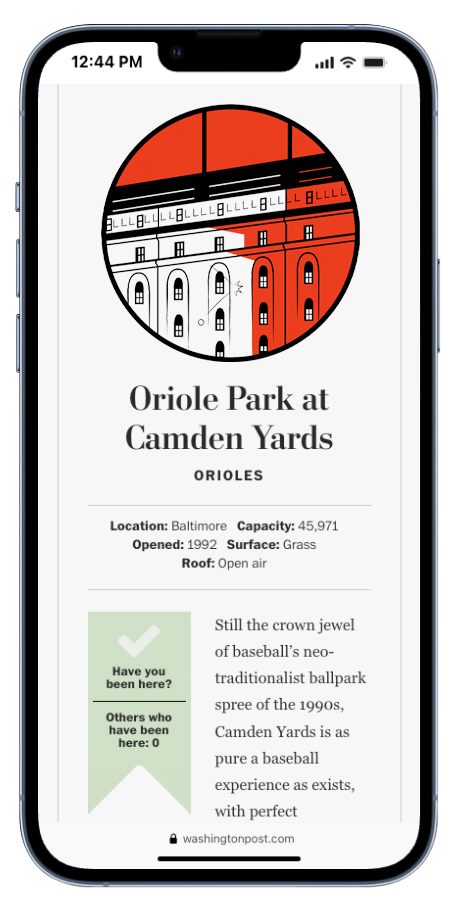 In 2017, The Washington Post decided it was time to do a definitive ranking of the MLB’s 30 ballparks. In addition to the ambience, writers ranked the food, insight from players and nearby amenities. We gave readers the option to submit their own memories and use the page as a virtual checklist.